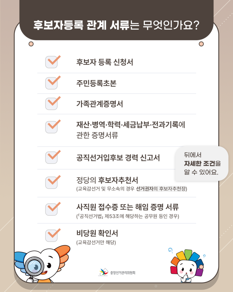 후보자등록 관계 서류를 제출해야 합니다.
