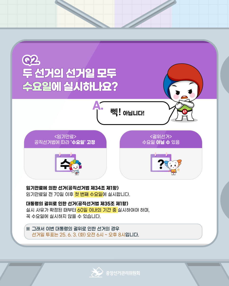 궐위선거는 꼭 수요일에 치러지지 않고, 투표 시간도 오후 8시까지 연장된다는 점!