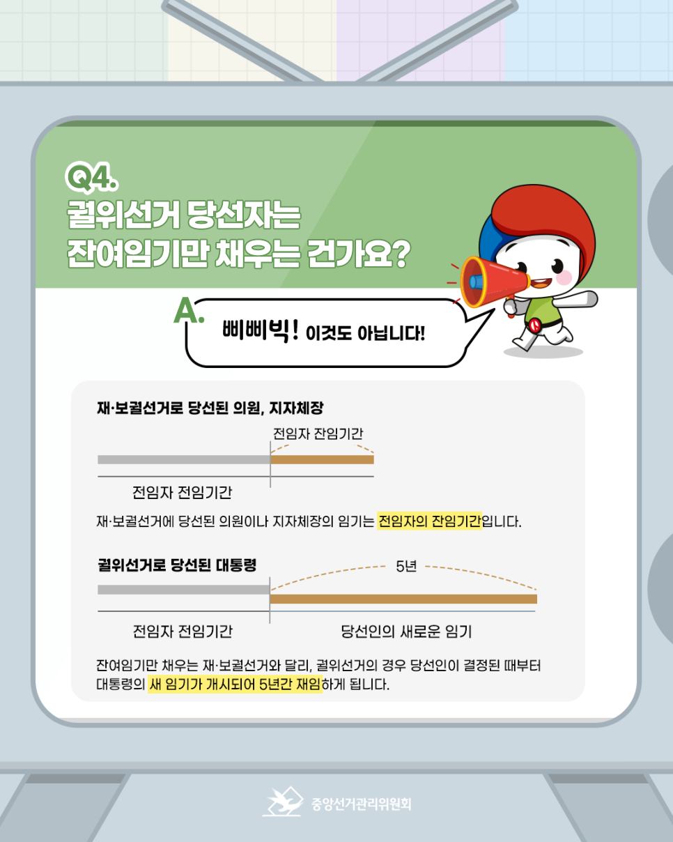 궐위선거로 당선된 대통령은 잔여임기만 채우는 것이 아닙니다.
