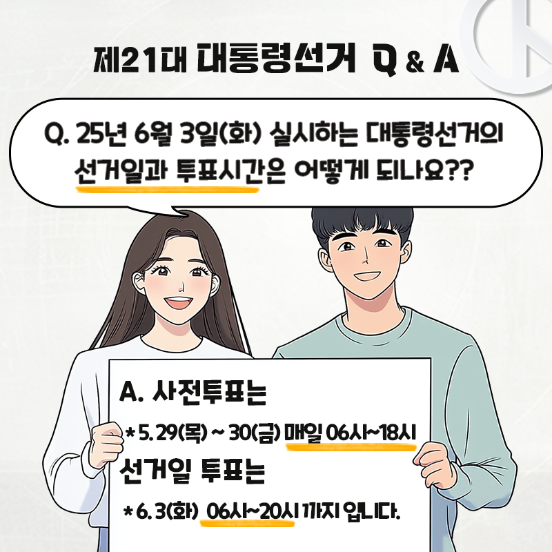 Q. 25년 6월 3일(화) 실시하는 대통령선거의 선거일과 투표시간은 어떻게 되나요??