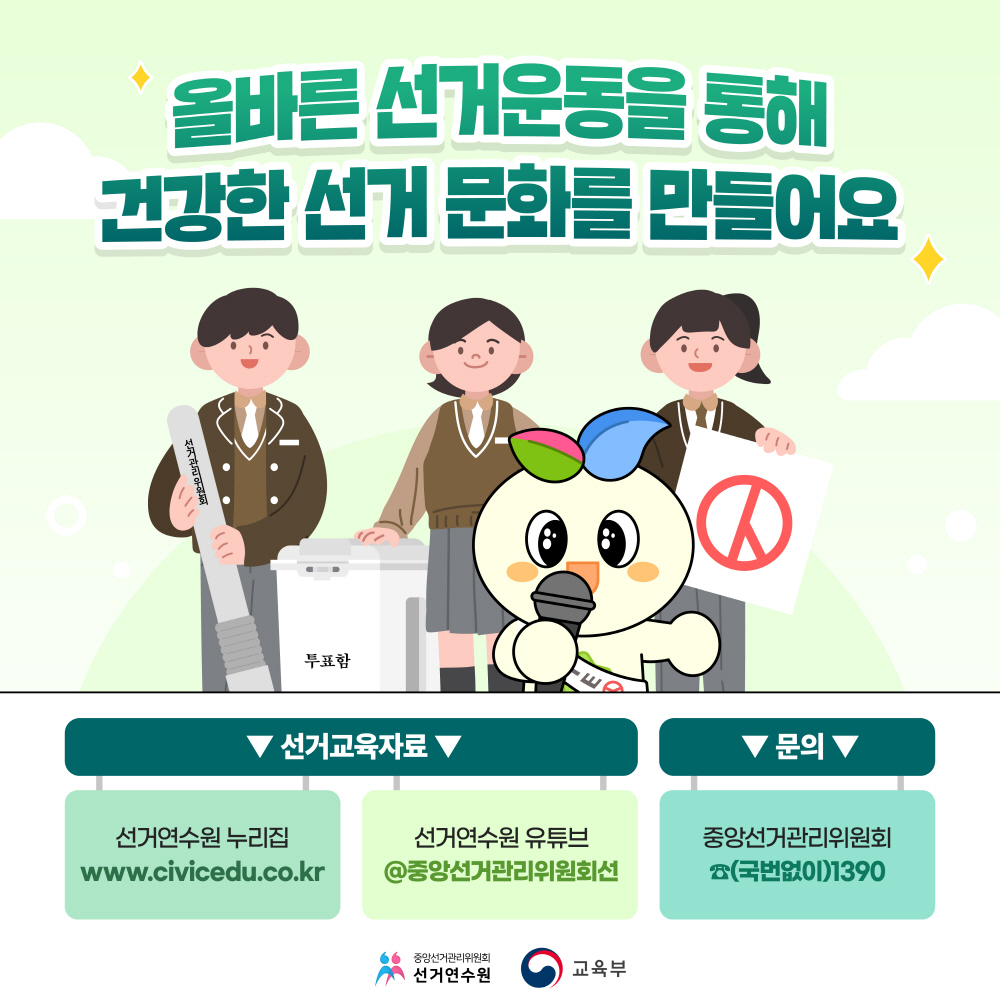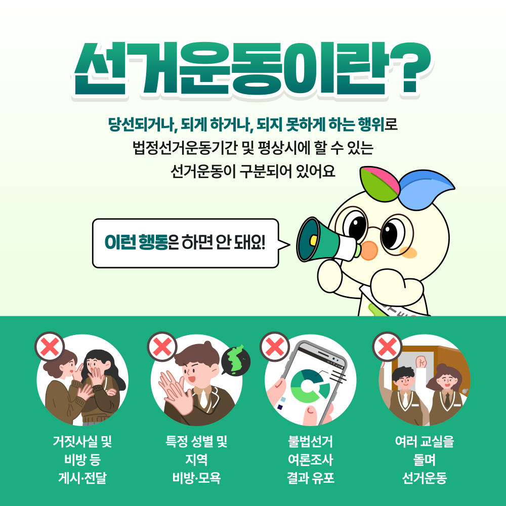 올바른 선거운동을 통해 건강한 선거문화를 만들어요!