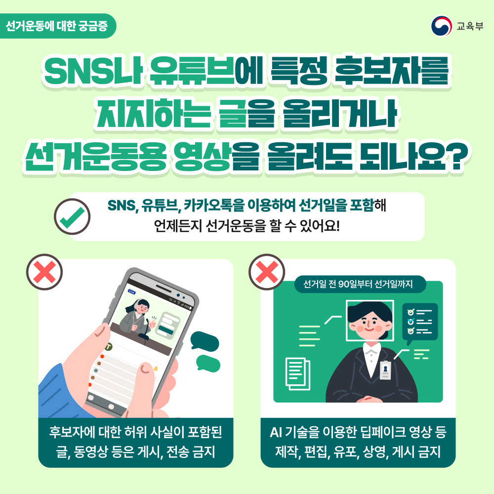Q3. SNS나 유튜브에 특정 후보자를 지지하는 글을 올리거나 선거운동용 영상을 올려도 되나요?