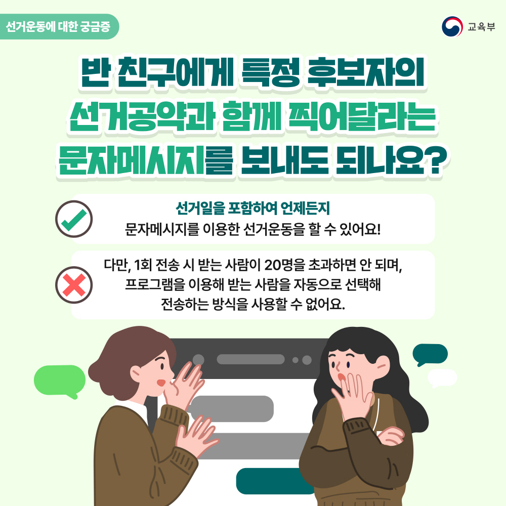 Q2. 반 친구에게 특정 후보자의 선거공약과 함께 찍어달라는 문자메시지를 보내도 되나요?