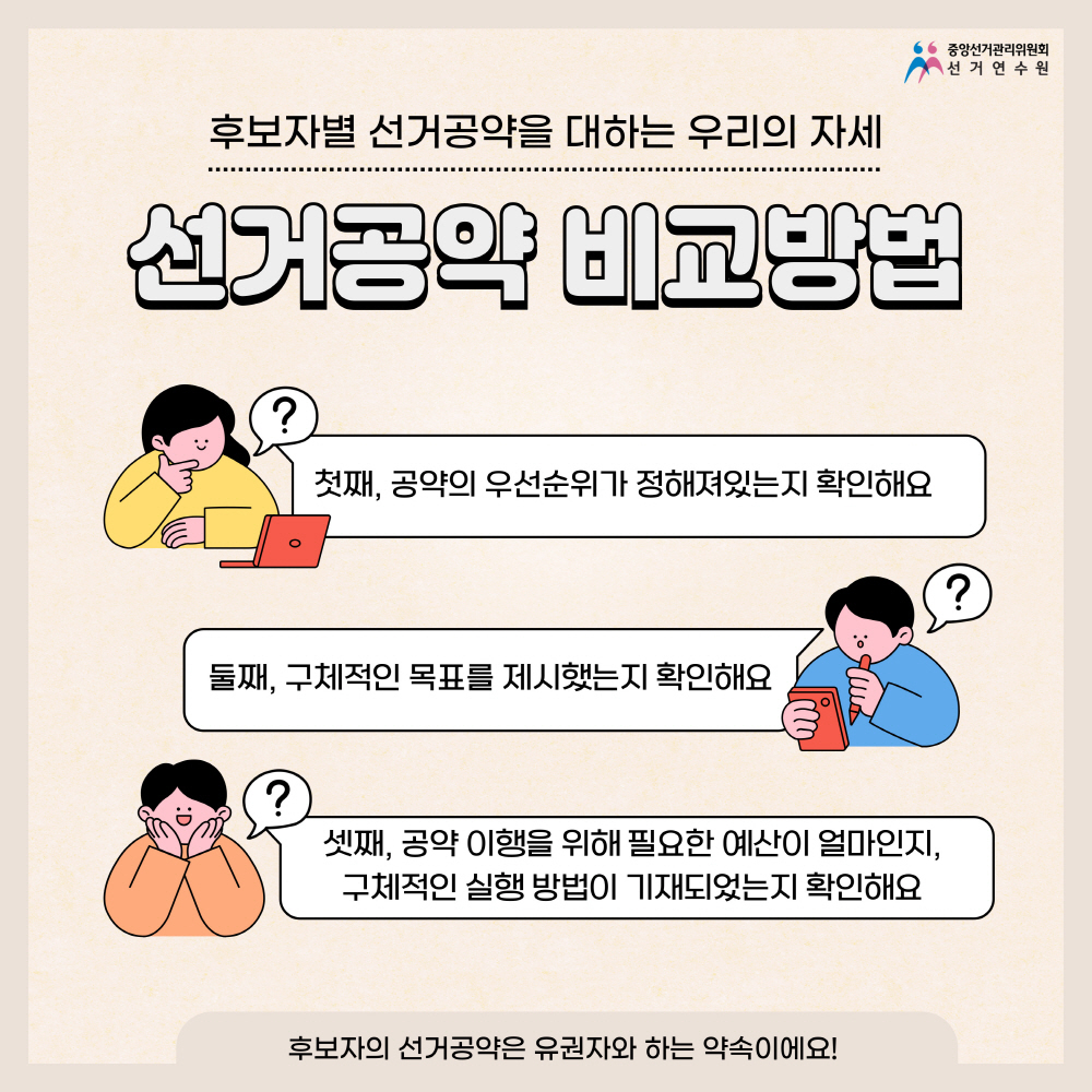 - 마지막으로 구체적인 공약의 실행 방법이 제시되어 있는지 확인해야 해요