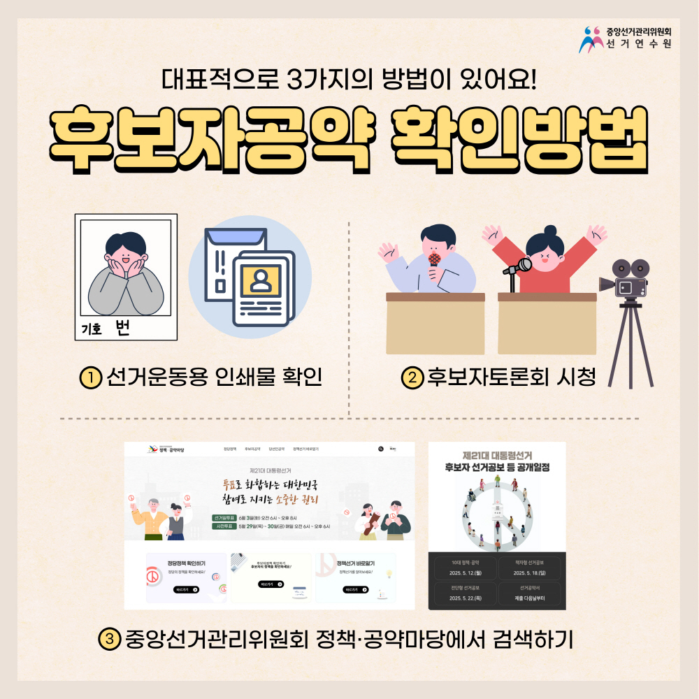 후보자의 선거 공약 확인 방법은 크게 3가지가 있어요