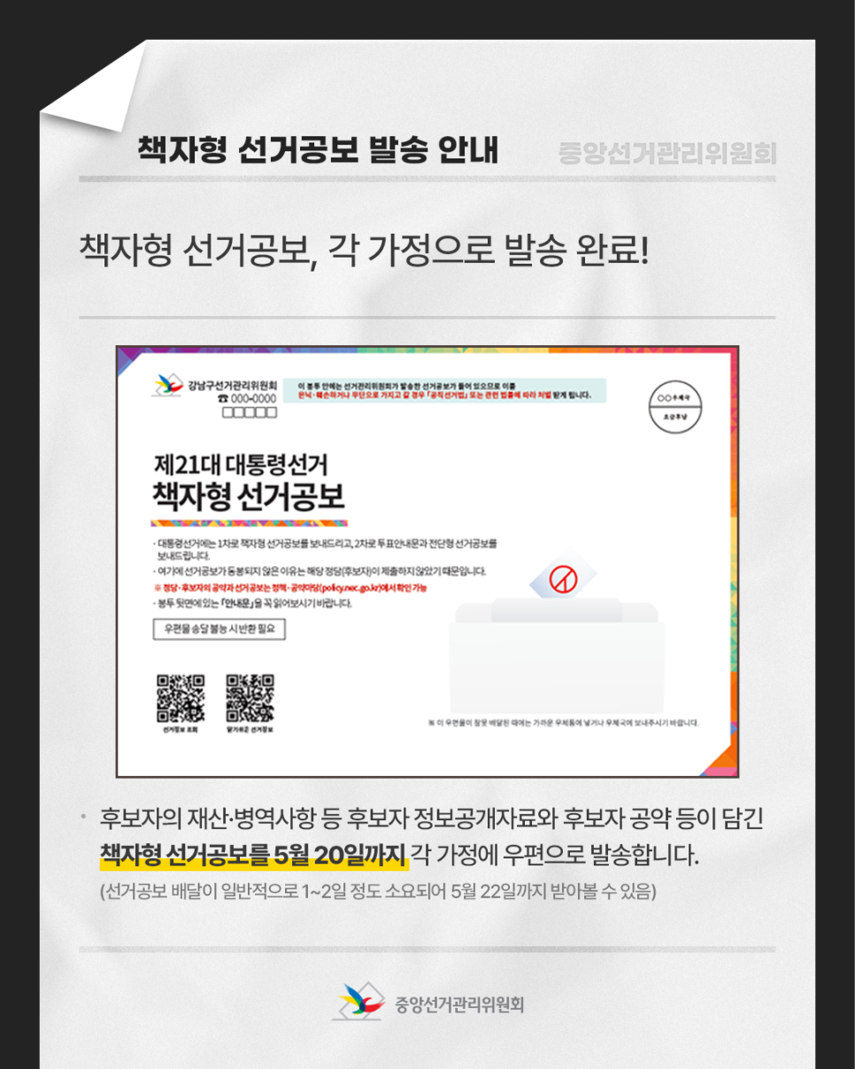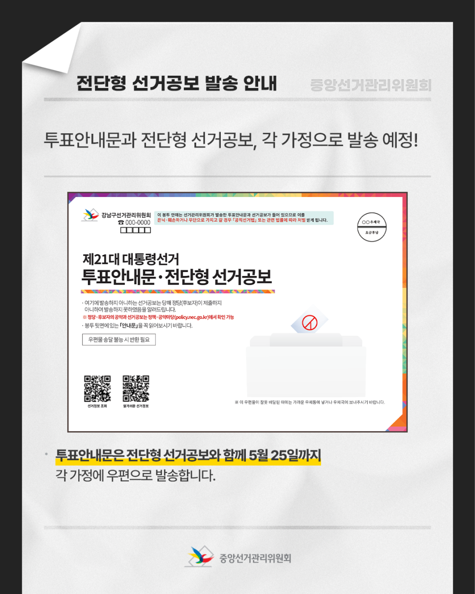 ✅ 투표안내문은 전단형 선거공보와 함께 5월 25일까지 각 가정에 우편으로 발송돼요!