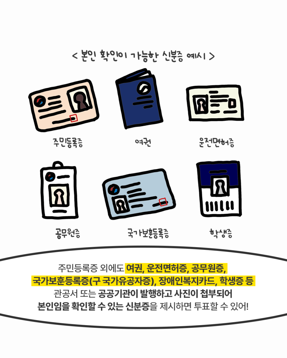 공공기관에서 발급한 신분증이면 투표가 가능해요.