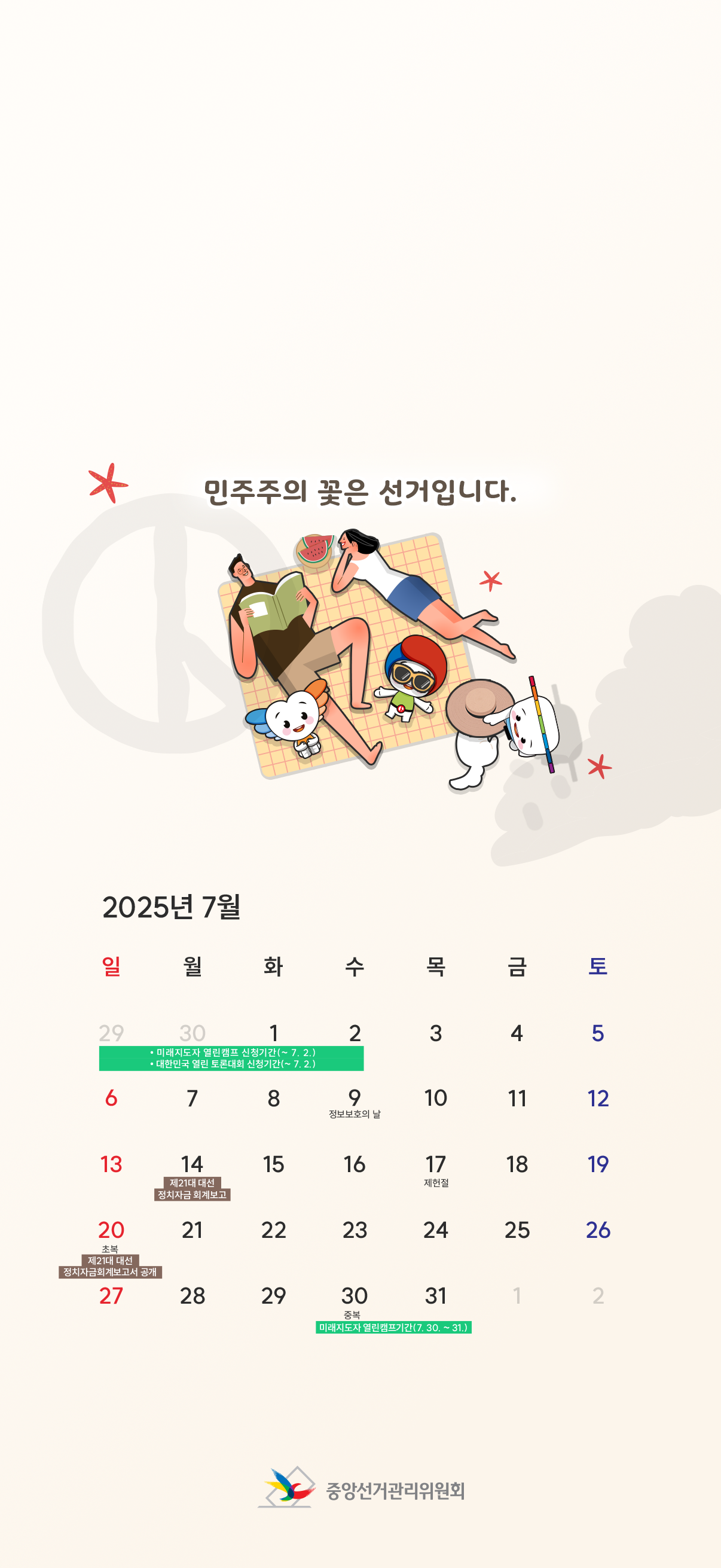 선거관리위원회 배경화면 달력(25년 7월)