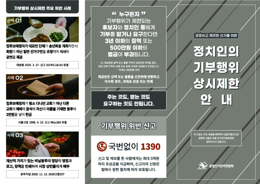 × 정치인이 사무실 등을 방문한 선거구민들과 함께 찍은 사진을 배부하거나 기념품을 제공