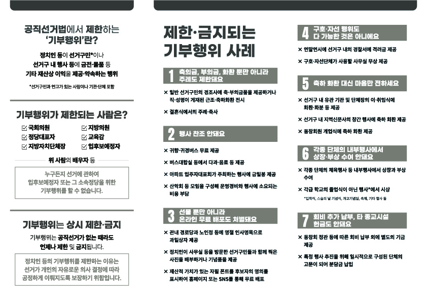 × 일반 선거구민의 경조사에 축·부의금품을 제공하거나 직·성명이 게재된 근조·축하화환 전시