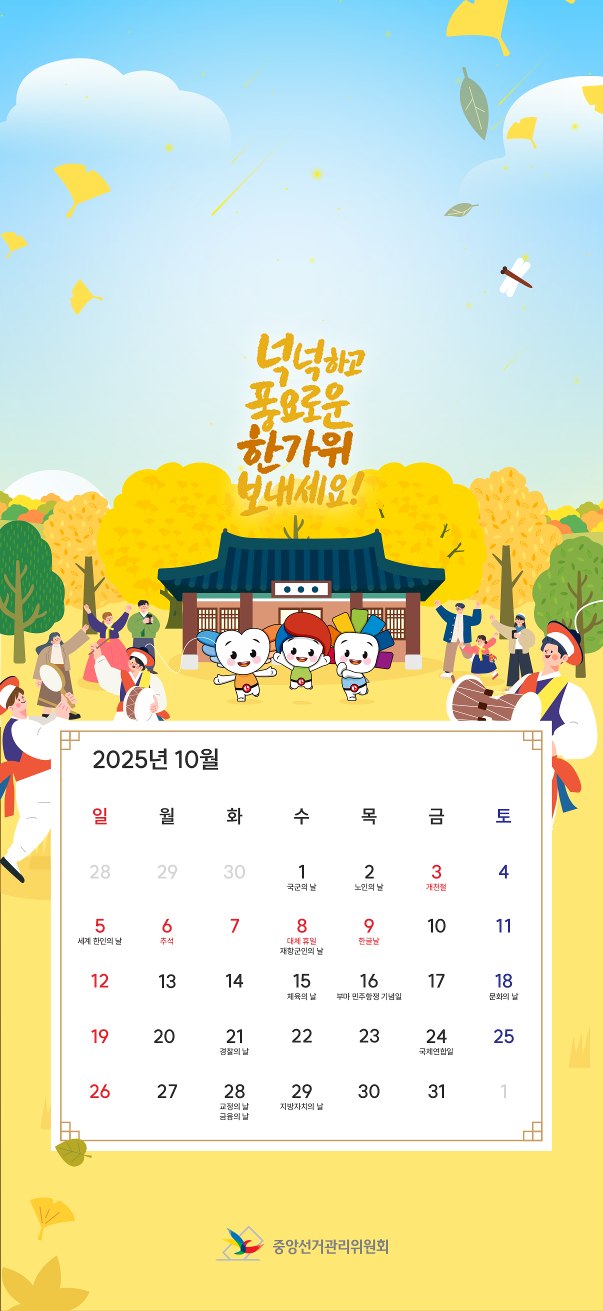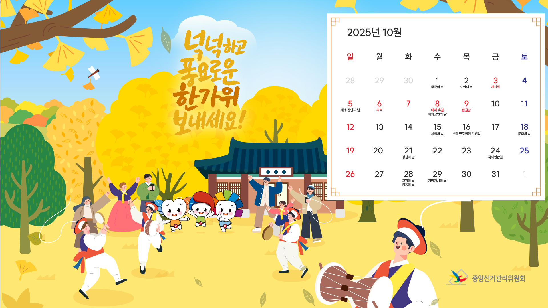 선거관리위원회 배경화면 달력(25년 10월)