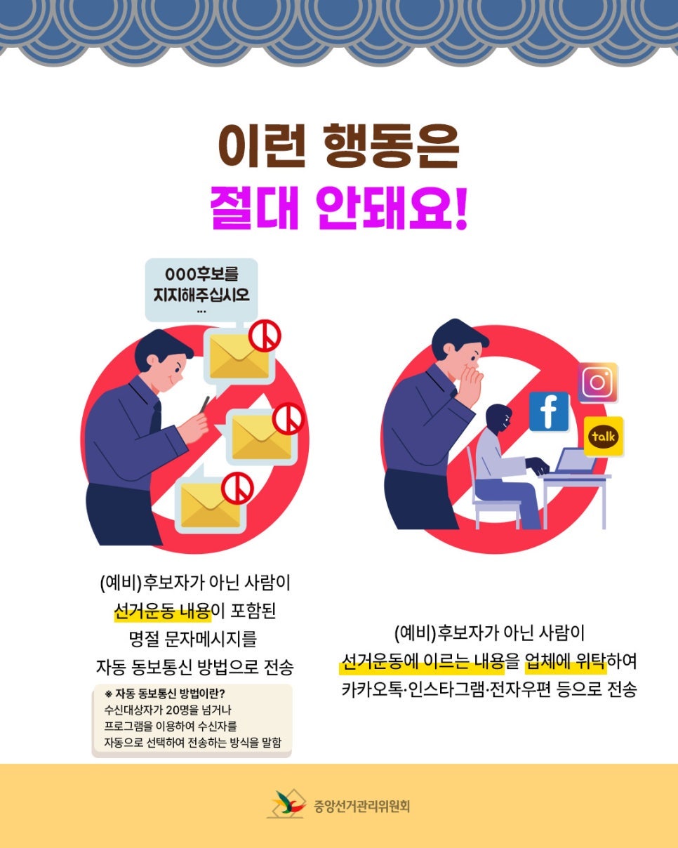 · (예비)후보자가 아닌 사람이 선거운동 내용이 포함된 명절 문자메시지를 자동 동보통신 방법으로 전송