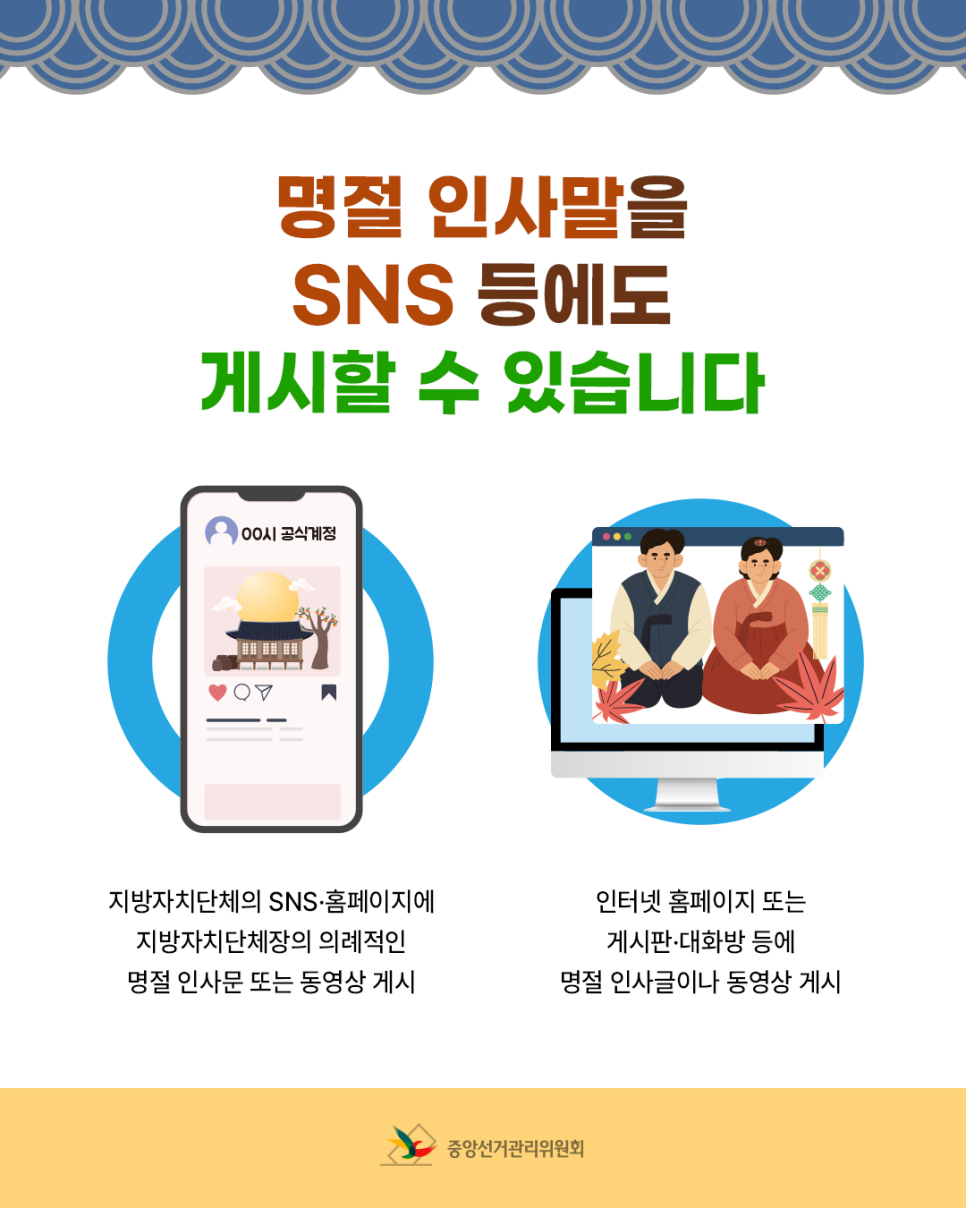 · 지방자치단체의 SNS·홈페이지에 지방자치단체장의 의례적인 명절 인사물 또는 동영상 게시