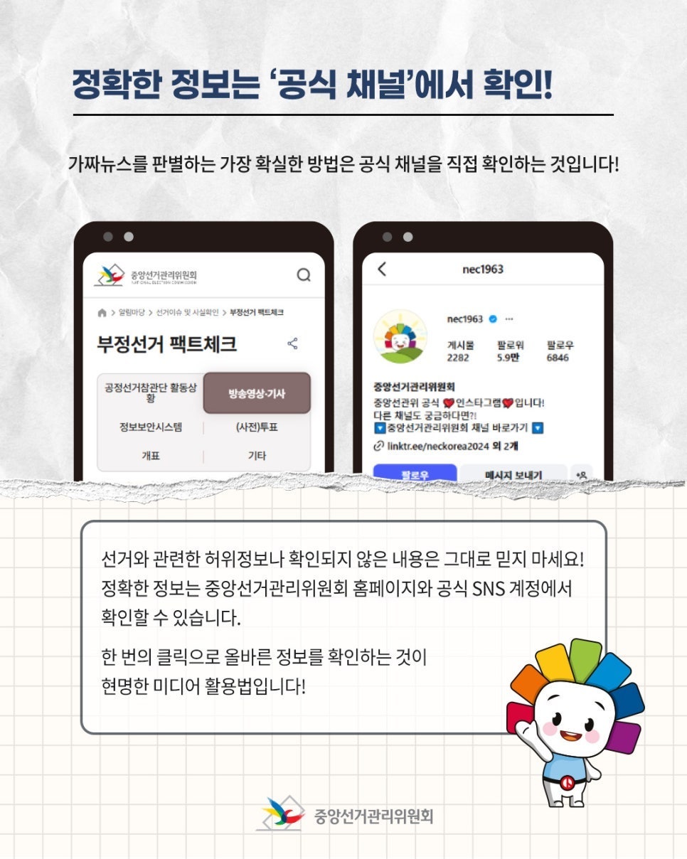 선거와 관련한 허위정보나 확인되지 않은 내용은 그대로 믿지 마세요!