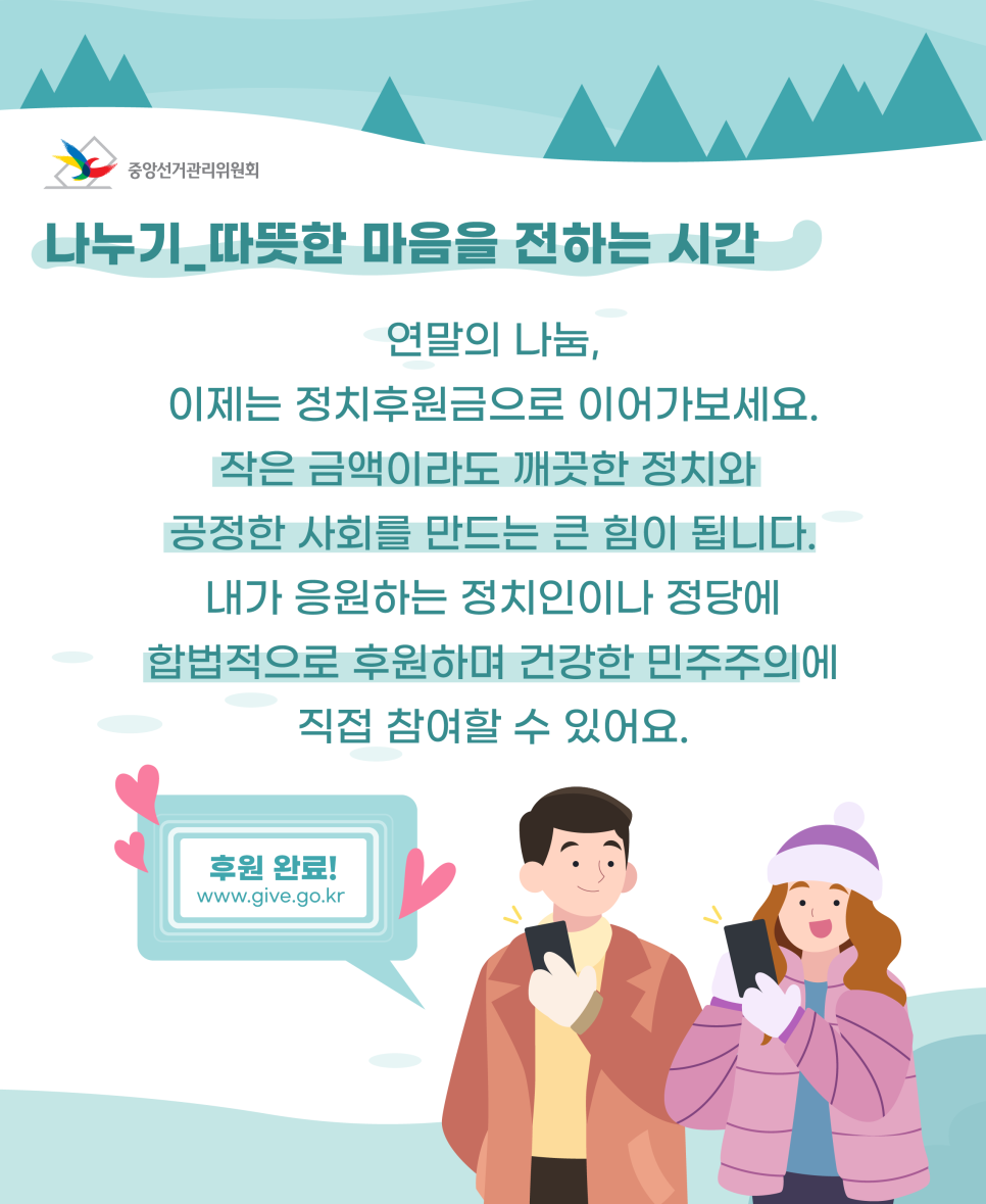 내가 응원하는 정치인이나 정당에 합법적으로 후원하며 건강한 민주주의에 직접 참여할 수 있어요.