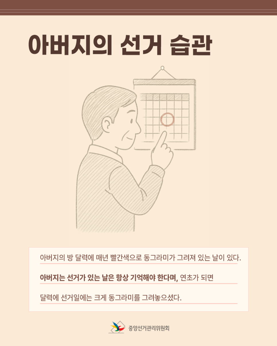 아버지는 선거가 있는 날은 항상 기억해야 한다며, 연초가 되면 달력에 선거일에는 크게 동그라미를 그려놓으셨다.