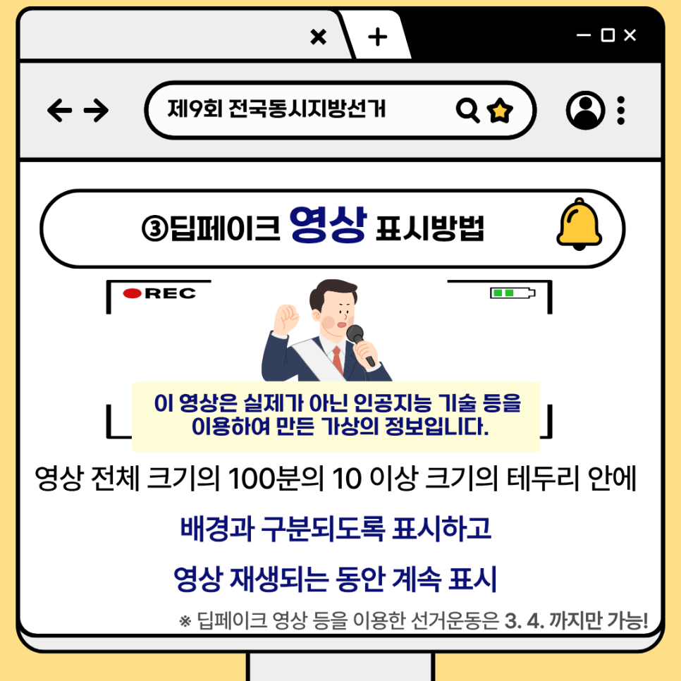 3. 5. ~ 6. 3.까지는 딥페이크 영상 등을 이용한 선거운동 전면 금지!